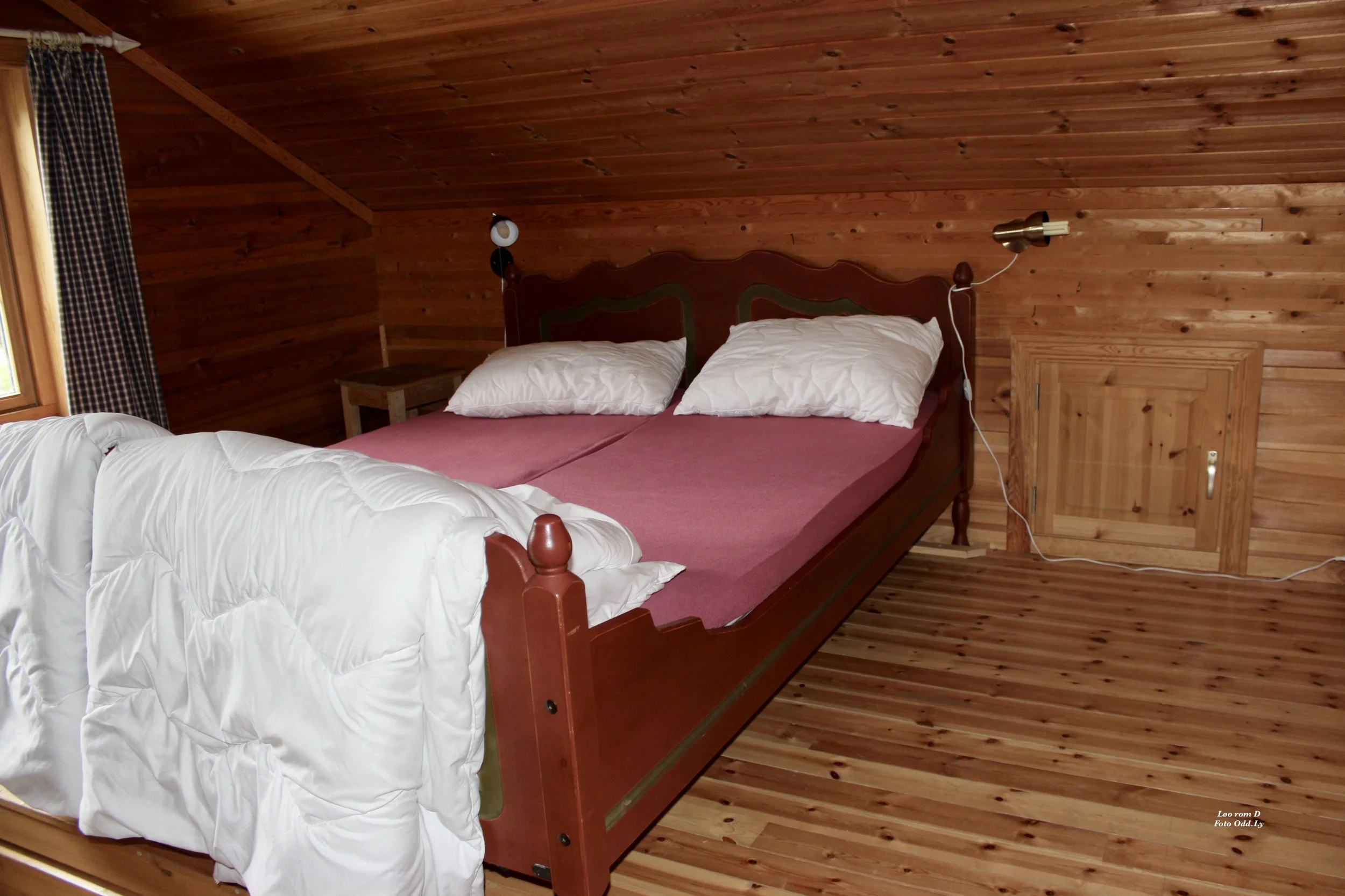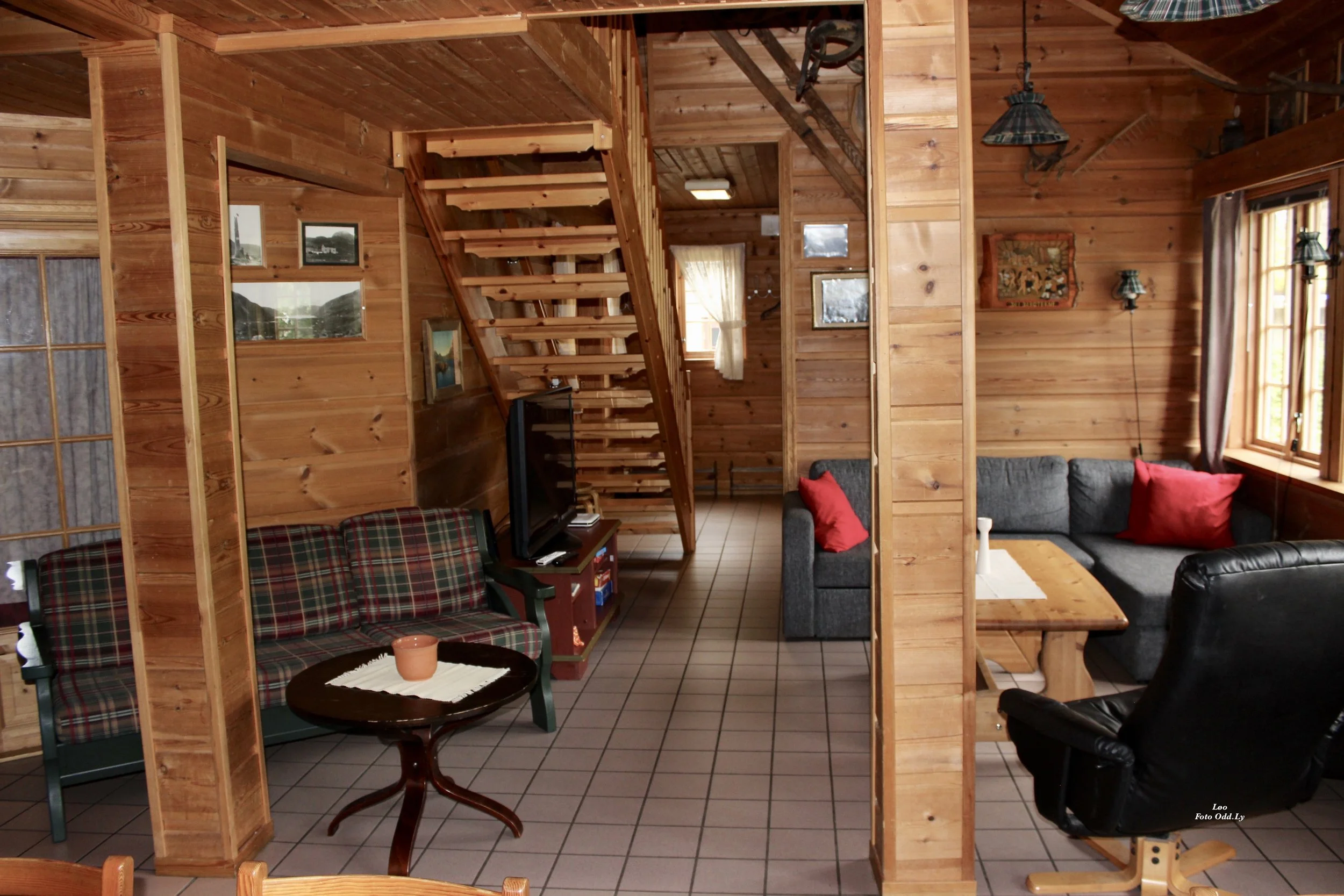 Det største bygget med 4 soverom, 11 sengeplassar og hems med ekstra madrassar for dei minste eller eventyrlystne. Det er tre toalett og to dusjar – så her kan fleire bu utan å stå i kø. Kjøkkenet er romsleg og velutstyrt, med alt du treng for å lage gode måltid.